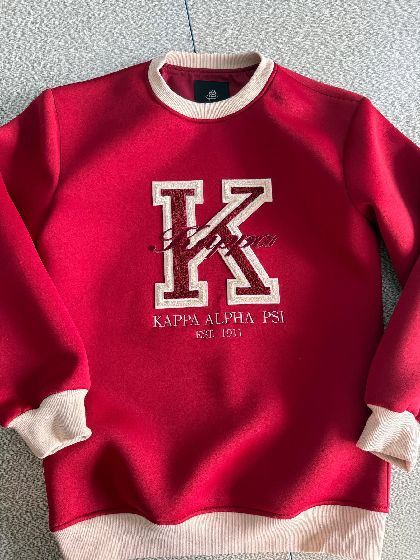 Finished in a bold red and cream colorway, this piece features a fully stitched Kappa “K” logo with embroidered detailing, honoring tradition, pride, and excellence. Clean lines, intentional contrast, and premium construction come together to create a sweatshirt that stands apart from standard fleece offerings.